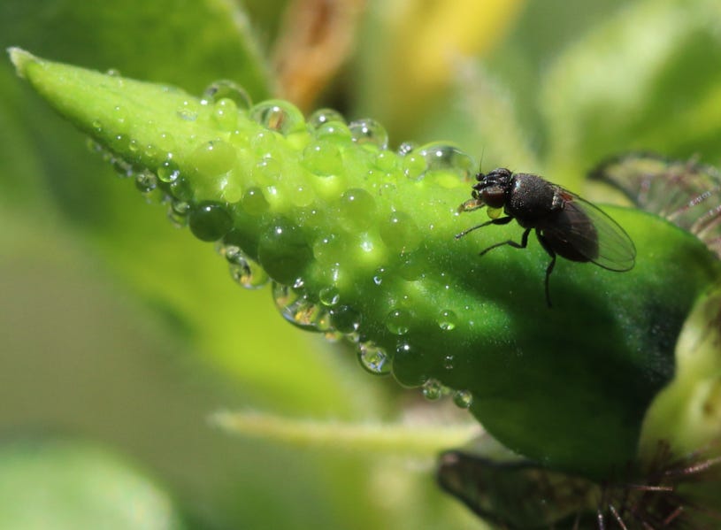 The droplets secreted by the flowers were found to be full of protein and sugar -- evidently a sweet reward to the flies. Flowers from which the flies were excluded did not produce any fruit, the study found.